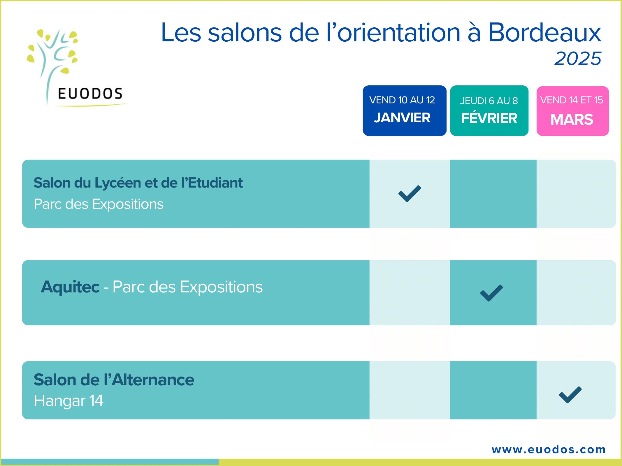 Pour bien démarrer cette nouvelle année et plus particulièrement pour les élèves de première et de terminale, programmez dans votre planning de participer aux prochains salons de l’orientation.