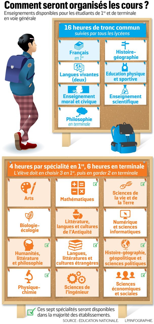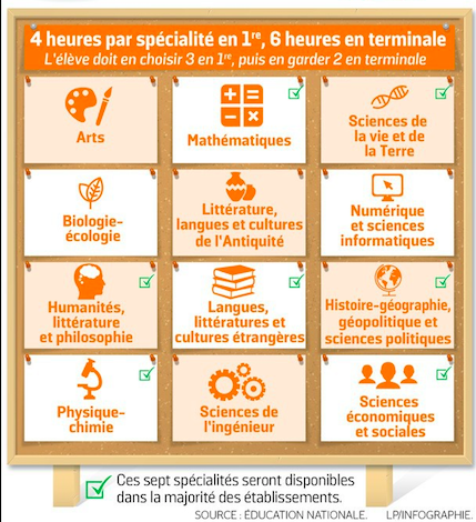 Un premier choix est effectué au cours de la Seconde, avec le choix des 3 spécialités qu’il suivra en Première. Un autre choix, encore plus décisif, est effectué au cours de la première, avec le choix des 2 spécialités qu’il conservera en Terminale et de celle qu’il arrêtera à l’issue de la Première. En effet, ce choix aura un fort impact sur sa capacité à bien réussir son baccalauréat, puisque les spécialités comptent pour 32% dans la note du bac, ainsi que sur les formations de l’enseignement supérieur auxquelles il pourra prétendre.