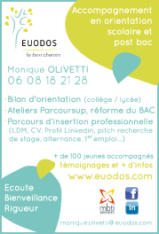 Tout au long de l’année et en particulier à partir de janvier notre cabinet est sollicité par les établissements scolaires pour animer des ateliers sur l’orientation ; c’est également la période des accompagnements individuels des collégiens et lycéens pour les aider dans les phases importantes de leur orientation (après la 3ème, choix des filières et options, saisie des vœux dans Parcoursup, projet de formation motivé…).